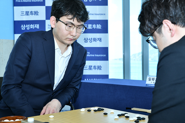 本届三星杯决赛在三面环海的玻璃屋中展开。经过猜先,在这场巅峰内战中先拔头筹。